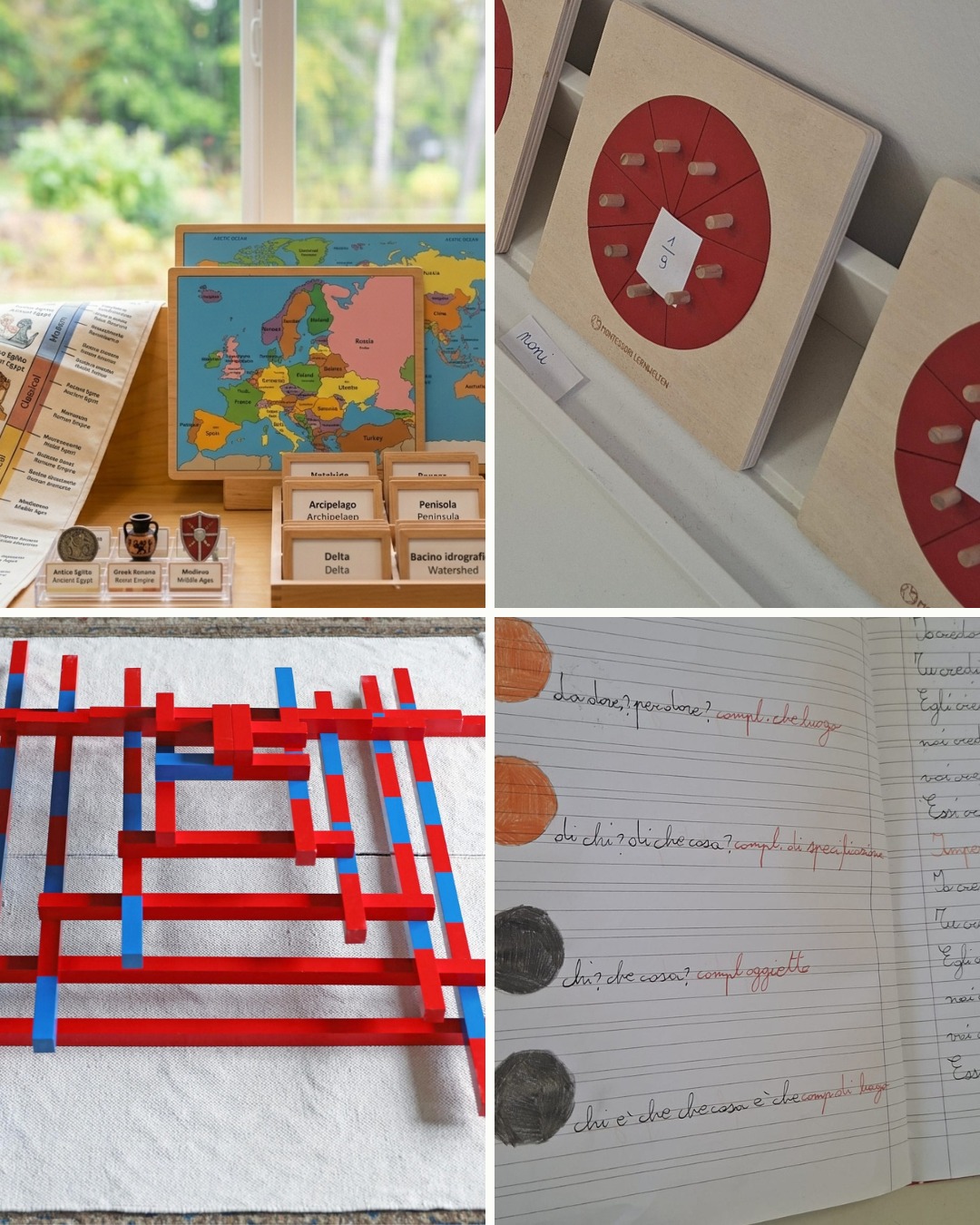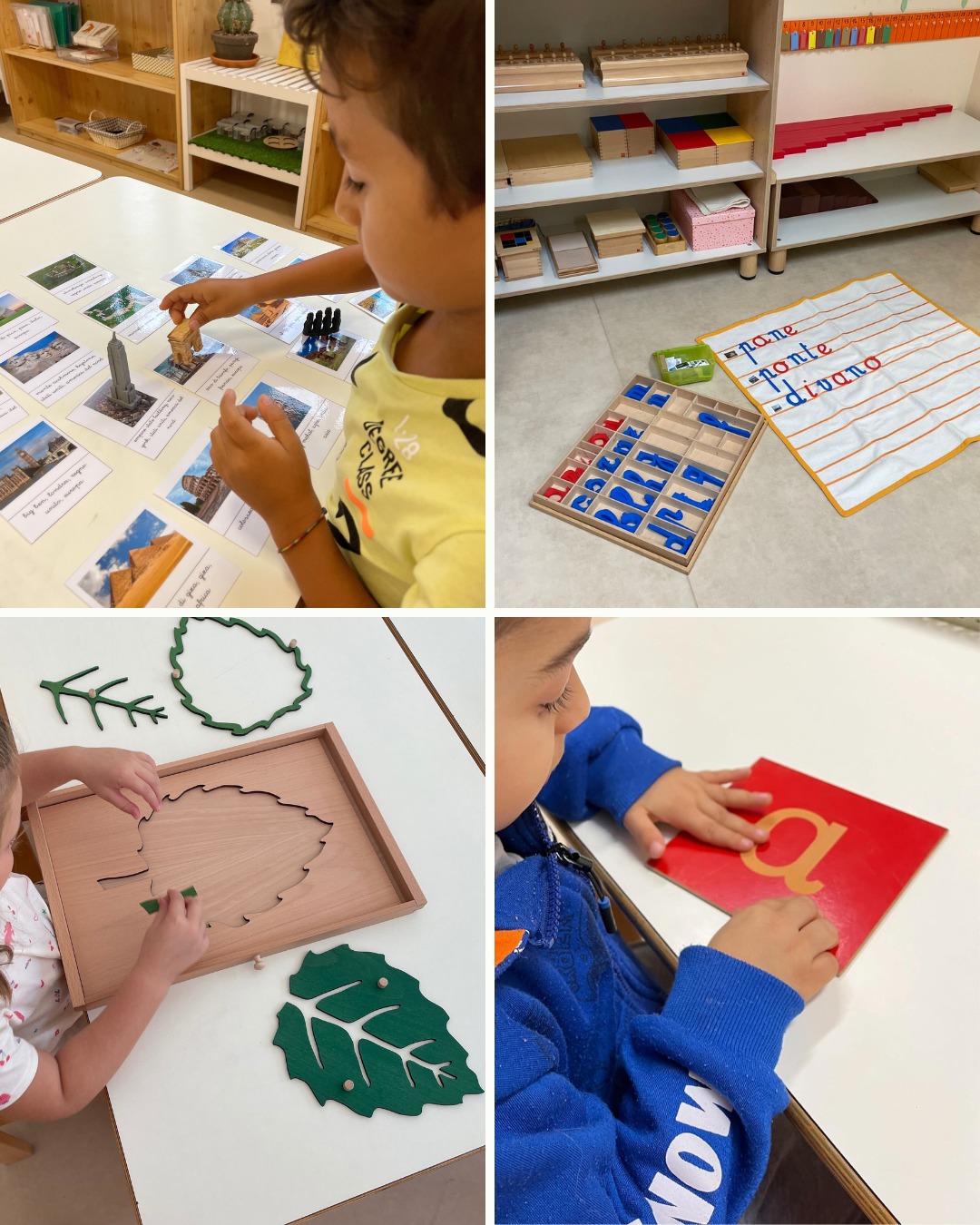 • L’ambiente preparato: Uno spazio ordinato, esteticamente gradevole e a misura di bambino, che favorisce l’autonomia, l’esplorazione e la concentrazione.